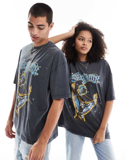 ASOS DESIGN - Uniseks oversized T-shirt met gelicenseerde Aerosmith-print in zwart met wassing