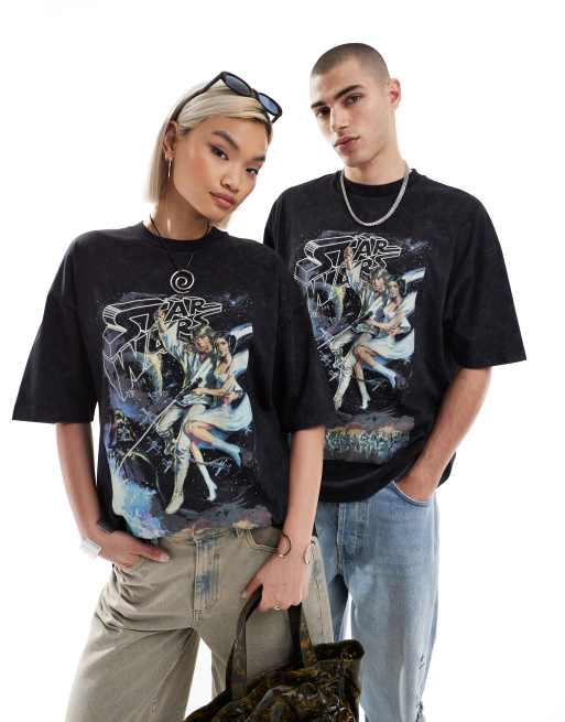 ASOS DESIGN - Uniseks oversized T-shirt met gelicenseerde grafische Star Wars-print in zwart