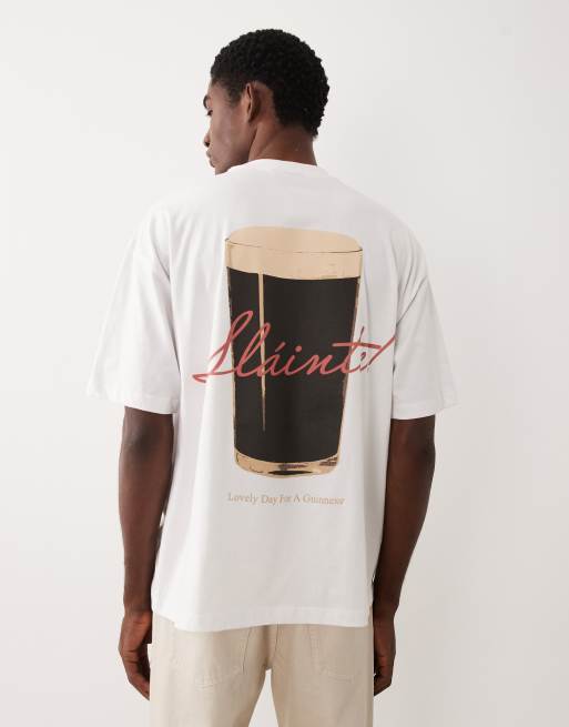 ASOS DESIGN - Uniseks oversized T-shirt met Guinness-print in wit.