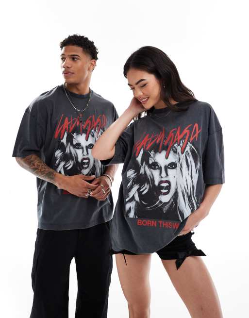 ASOS DESIGN - Uniseks oversized T-shirt met Lady Gaga Born This Way-print en wassing in zwart