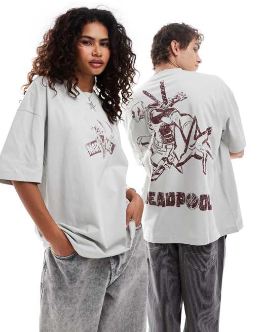ASOS DESIGN - Uniseks oversized T-shirt met Marvel Deadpool-prints in grijs