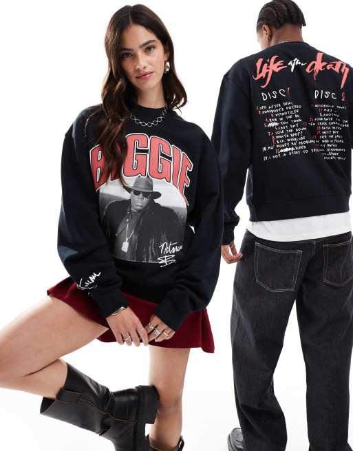 ASOS DESIGN - Uniseks recht sweatshirt met gelicenseerde Biggie Smalls-prints in zwart