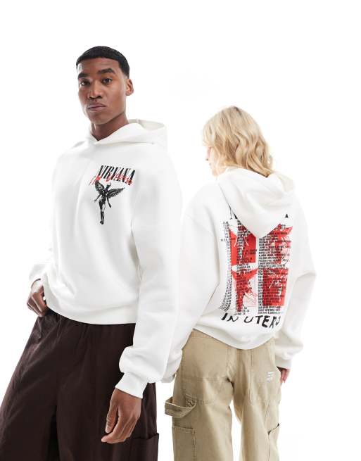ASOS DESIGN - Unisex oversized hoodie met gelicenseerde Nirvana-prints in gebroken wit