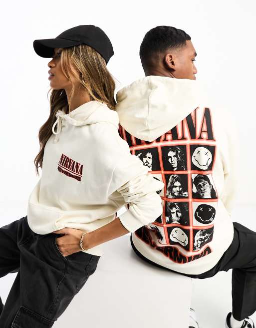ASOS DESIGN - Unisex oversized hoodie met Nirvana-print in ecru