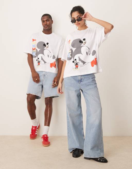 ASOS DESIGN - Unisex oversized T-shirt met Disney Mickey Mouse-prints in wit