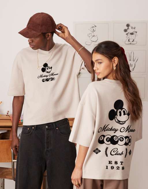 ASOS DESIGN - Unisex oversized T-shirt met Disney Mickey Mouse-prints in wit