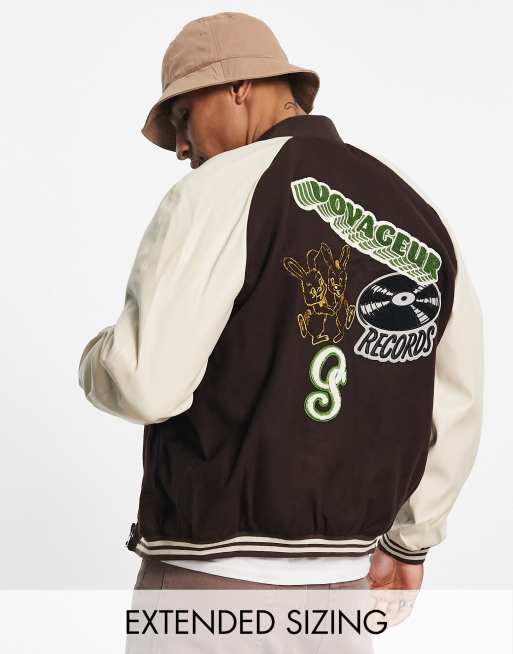 ASOS DESIGN - Varsity jack van imitatieleer met borduursels in bruin