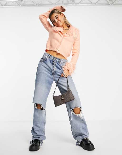 ASOS DESIGN - Vest met afneembare randen van imitatiebont in oranje