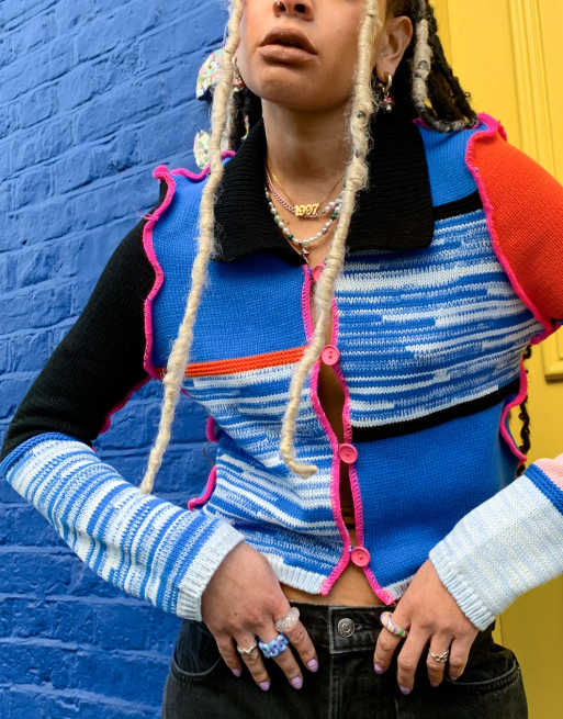 ASOS DESIGN - Vest met kraagje in space-dye met contrasterende naden