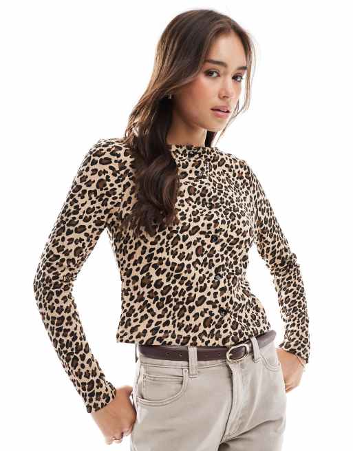 ASOS DESIGN - Vest met wafelstructuur en luipaardprint in bruin