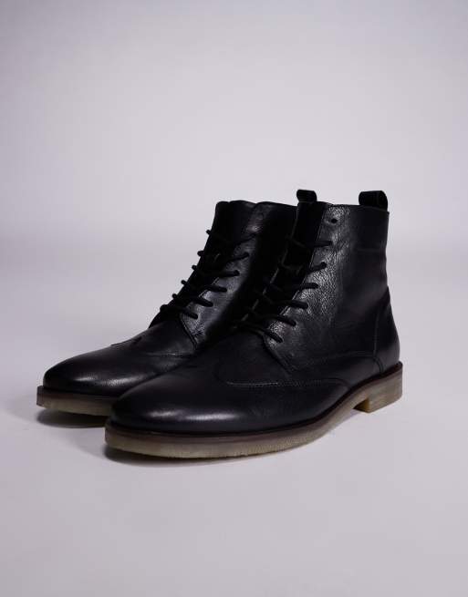 ASOS DESIGN - Veterlaarzen van leer in zwart