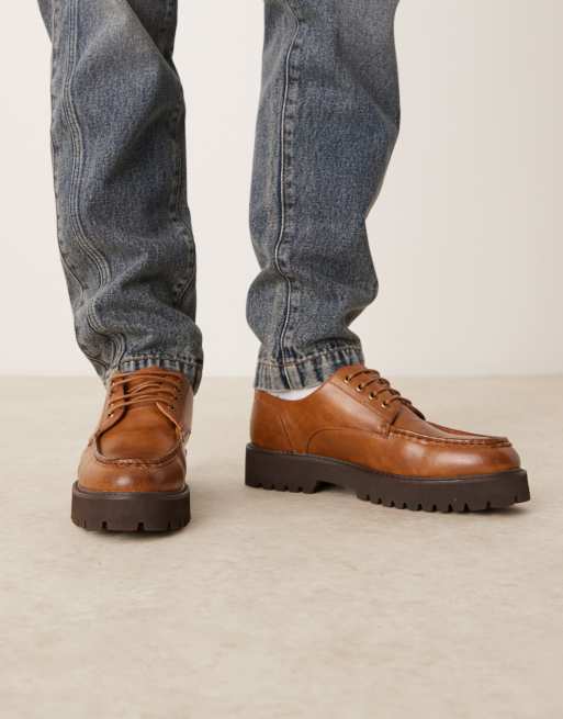 ASOS DESIGN - Veterschoenen met mocassinnaad in bruin