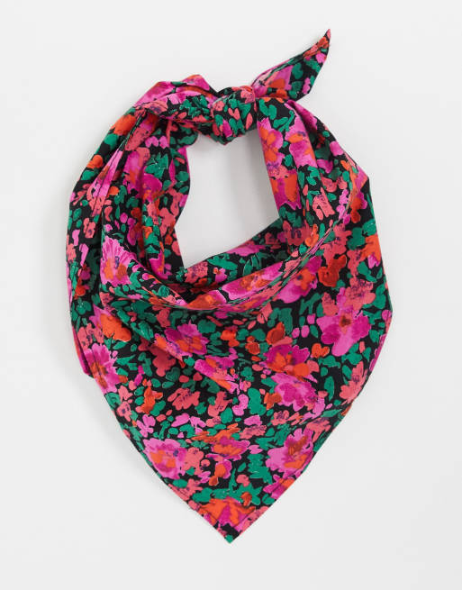 ASOS DESIGN - Vierkante bandanasjaal met bloemenprint in zwart