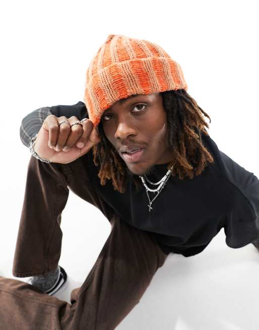 ASOS DESIGN - Vissersbeanie in stone en oranje