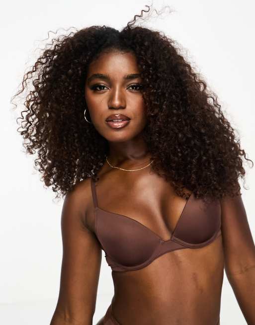 ASOS DESIGN - Voorgevormde push-up bh van microvezel in bruin