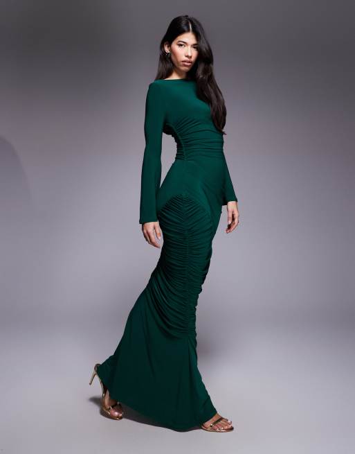 ASOS DESIGN - Vormgevende maxi jurk met geplooide vlakken en lange mouwen in groen