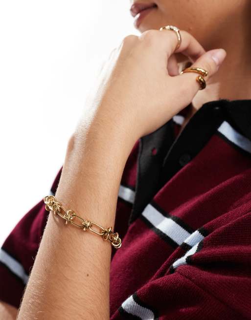 ASOS DESIGN - Waterbestendige armband van roestvrij staal met geknoopte ketting in goudkleur
