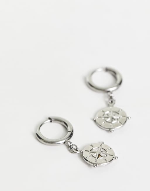 ASOS DESIGN - Waterproof oorringen van roestvrij staal met kompas-ontwerp in zilverkleur