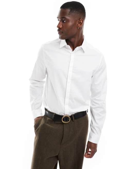 ASOS DESIGN Wedding - Regular-fit overhemd met textuur en vierkante kraag in wit