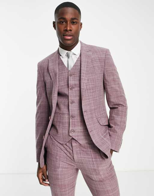 ASOS DESIGN Wedding - Skinny colbert in bordeauxrood met crosshatch