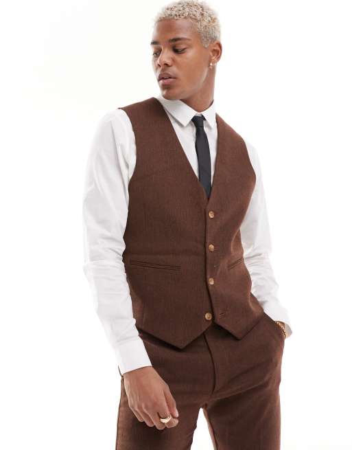 ASOS DESIGN Wedding - Skinny gilet van wolmix in bruin met textuur van geweven steken