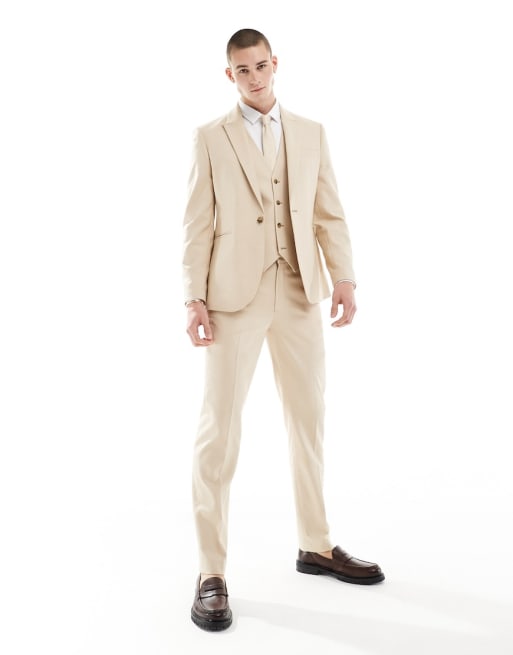 ASOS DESIGN Wedding - Smal pak met microtextuur in camel