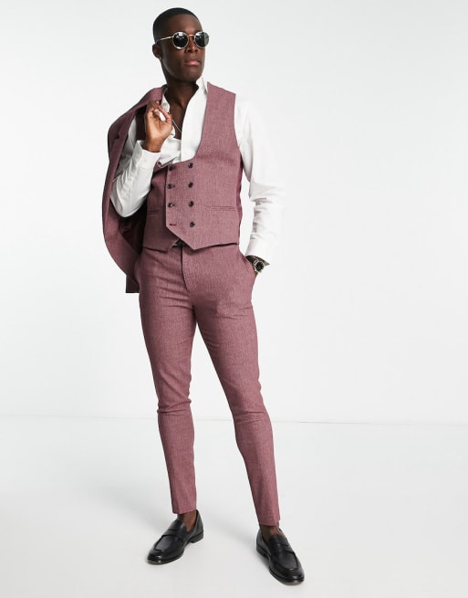 ASOS DESIGN Wedding - Super skinny pak met microtextuur in bordeauxrood