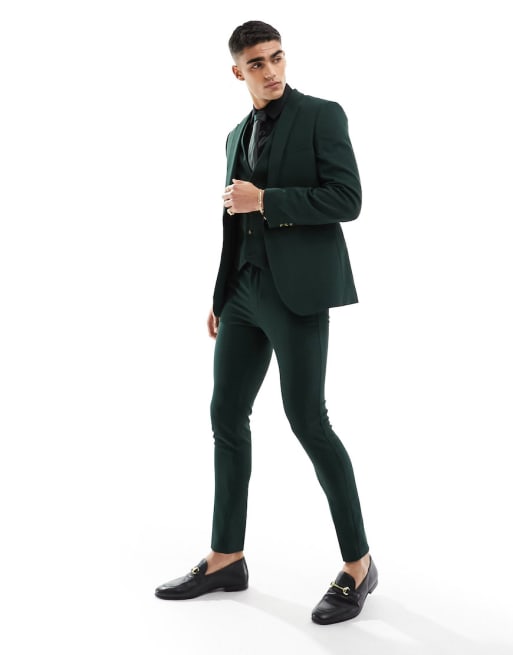 ASOS DESIGN Wedding - Super skinny pak met microtextuur in bosgroen