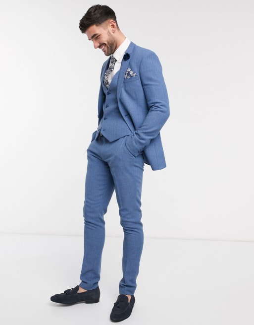 ASOS DESIGN wedding - Superskinny kostuum in korenbloemblauw van wolmix