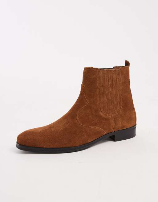 ASOS DESIGN - Western Chelsea boots van suède in lichtbruin