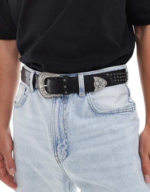 ASOS DESIGN - Western riem van imitatieleer met studs en zwart kristallen detail in zwart