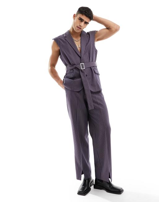 ASOS DESIGN - Wijde gestreepte pantalon in paars
