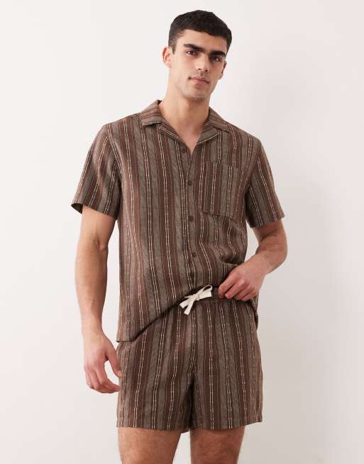 ASOS DESIGN - Wijde halflange gestreepte short met elastische taille in bruin, deel van co-ord set