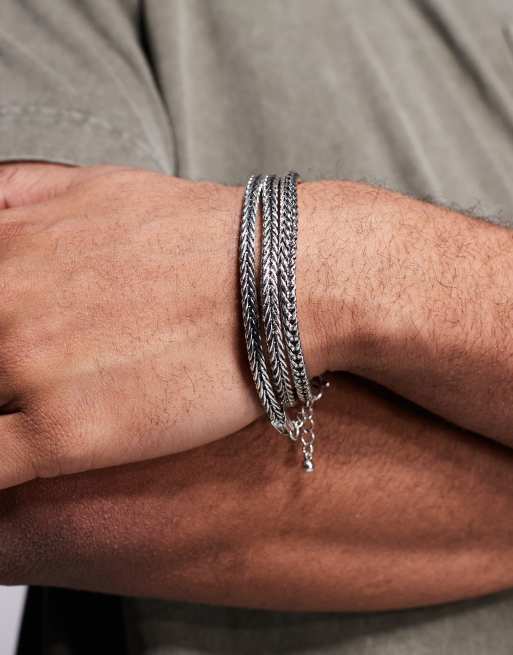 ASOS DESIGN - Wikkelketting met vierkante schakels in gepolijst zilver