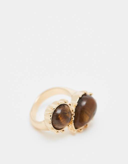 ASOS DESIGN - Wikkelring met echte tijgeroog-steentjes in goudkleur