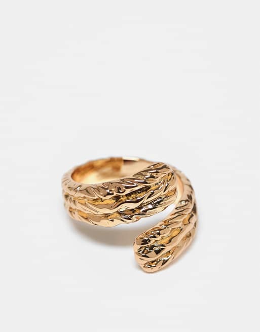 ASOS DESIGN - Wikkelring met gesmolten textuur in goudkleur