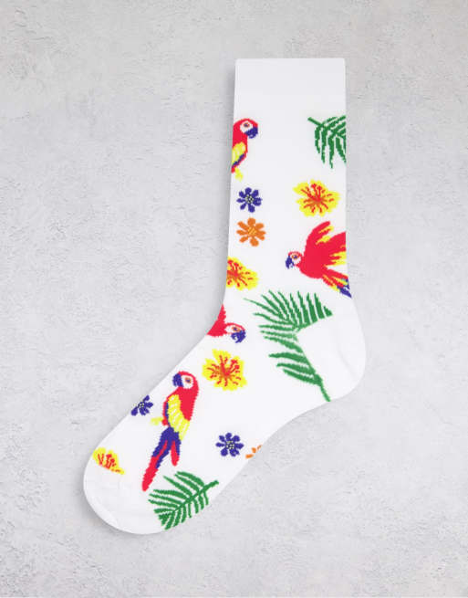 ASOS DESIGN - Witte enkelsokken met tropische papegaaien