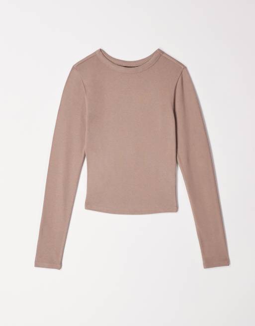 ASOS DESIGN - Zacht gekrompen T-shirt met lange mouwen in mokka