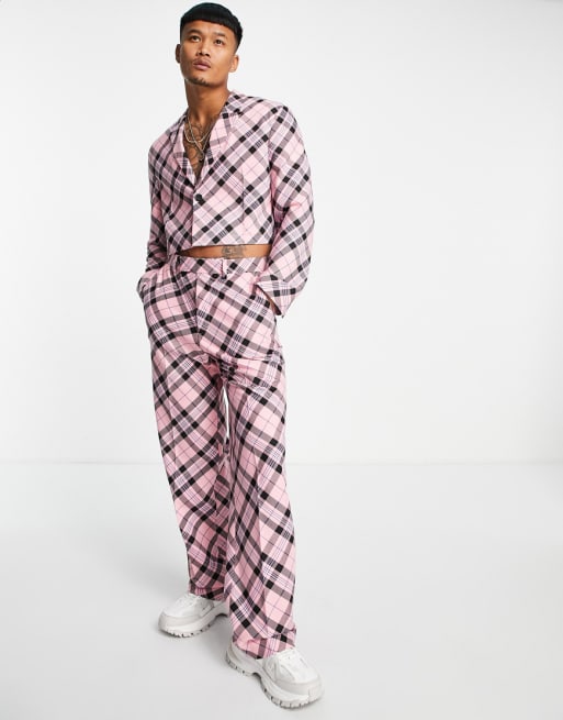 ASOS DESIGN - Zacht pak met figuurnaden en schuine Schotse ruit in roze