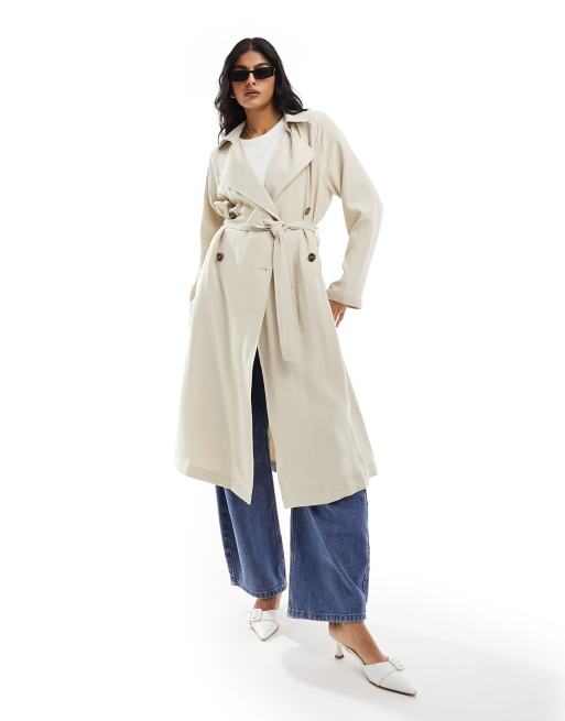 ASOS DESIGN - Zachte midi-trenchcoat in stone