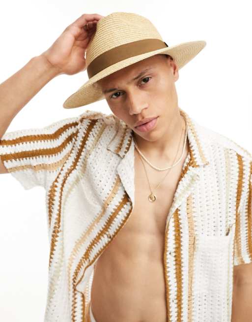 ASOS DESIGN - Zachte strohoed in biscuit met band in dezelfde tint