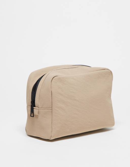ASOS DESIGN - Zachte toilettas met contrasterende rits in stone