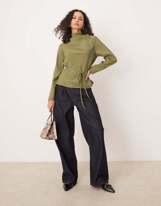 ASOS DESIGN - Zachte top met gedrapeerde gestrikte hals in kaki