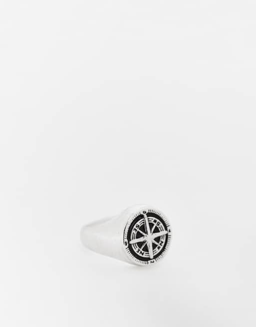 ASOS DESIGN - Zegelring met kompas-ontwerp in gepolijste zilverkleur