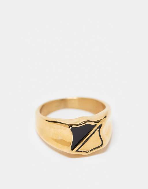 ASOS DESIGN - Zegelring van waterbestendig roestvrij staal met steen met zwart emaille in goud