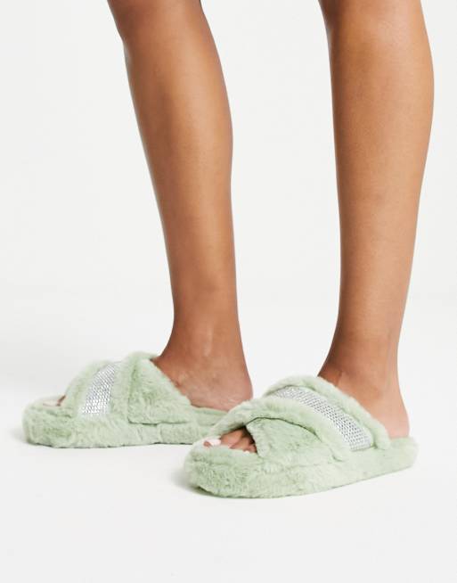 ASOS DESIGN - Zena - Instappantoffels met versiering en dikke zool in saliegroen