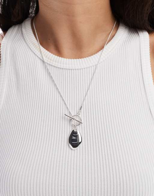 ASOS DESIGN - Zilver vergulde ketting met T-staafje en gesmolten hangertje