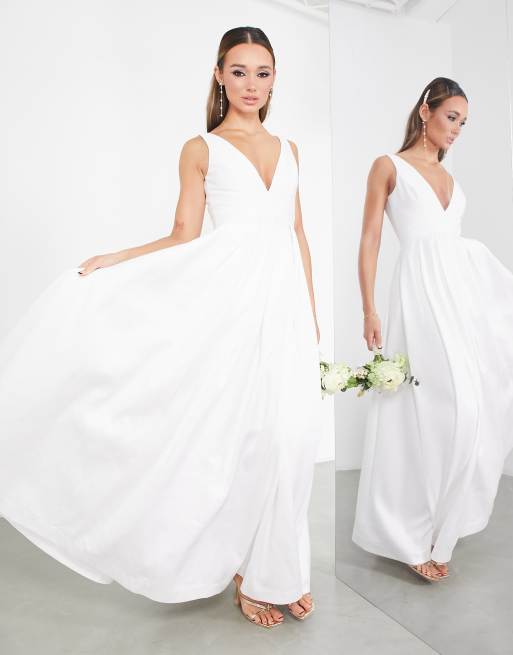 ASOS EDITION - Henrietta - Trouwjurk met diep decolleté, ingenomen taille en volle rok in ivoor