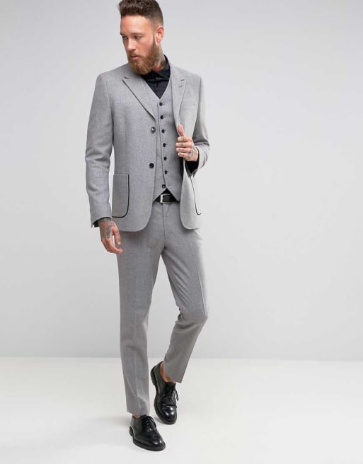 ASOS - Lichtgrijs skinny kostuum met detail op de pijpen