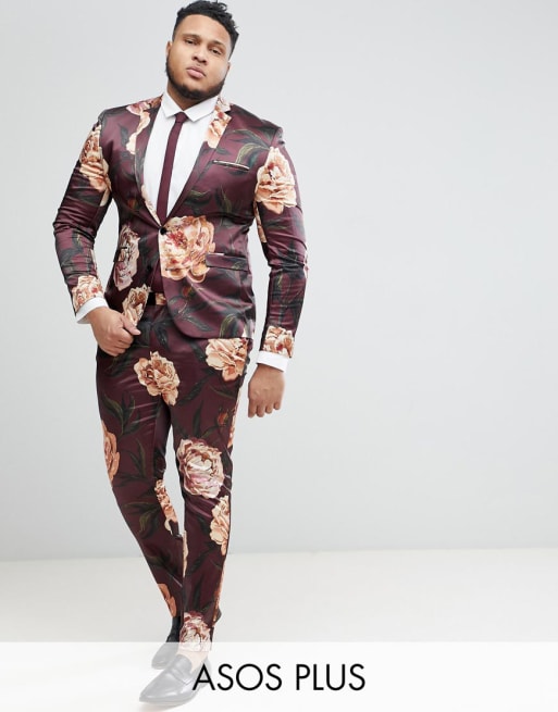 ASOS PLUS - Superskinny kostuum in bordeaux met bloemenprint